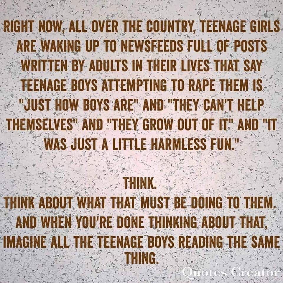 The guilt that the manager made me feel has stuck to me like a nasty residue on a sauté pan. Not just for that instance either. As a teen there was an older creepy man who kept playing with my hair and said multiple times that “if I were to be raped and get pregnant then he’d adopt the baby”. When I spoke with an authority figure in my life about this, it was I who was questioned: what had I been wearing? Nothing immodest or my parents wouldn’t have let me leave the house.