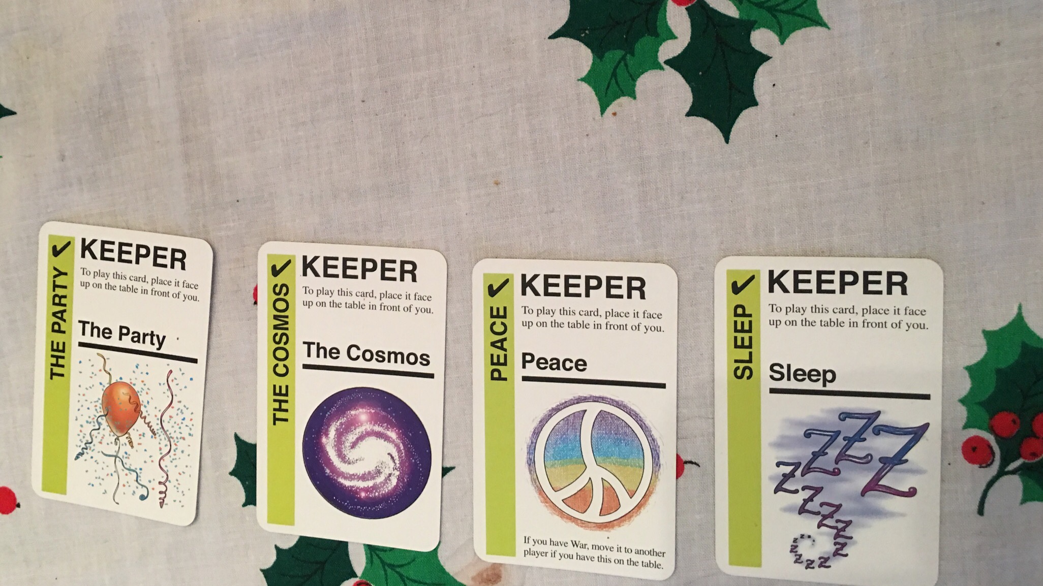 While the basic rules are simple and the cards’ themes are common items, the game changes so much it can be difficult to follow. I wouldn’t recommend it for younger children – it’s easy to make someone else win. The goal of the game changes frequently.