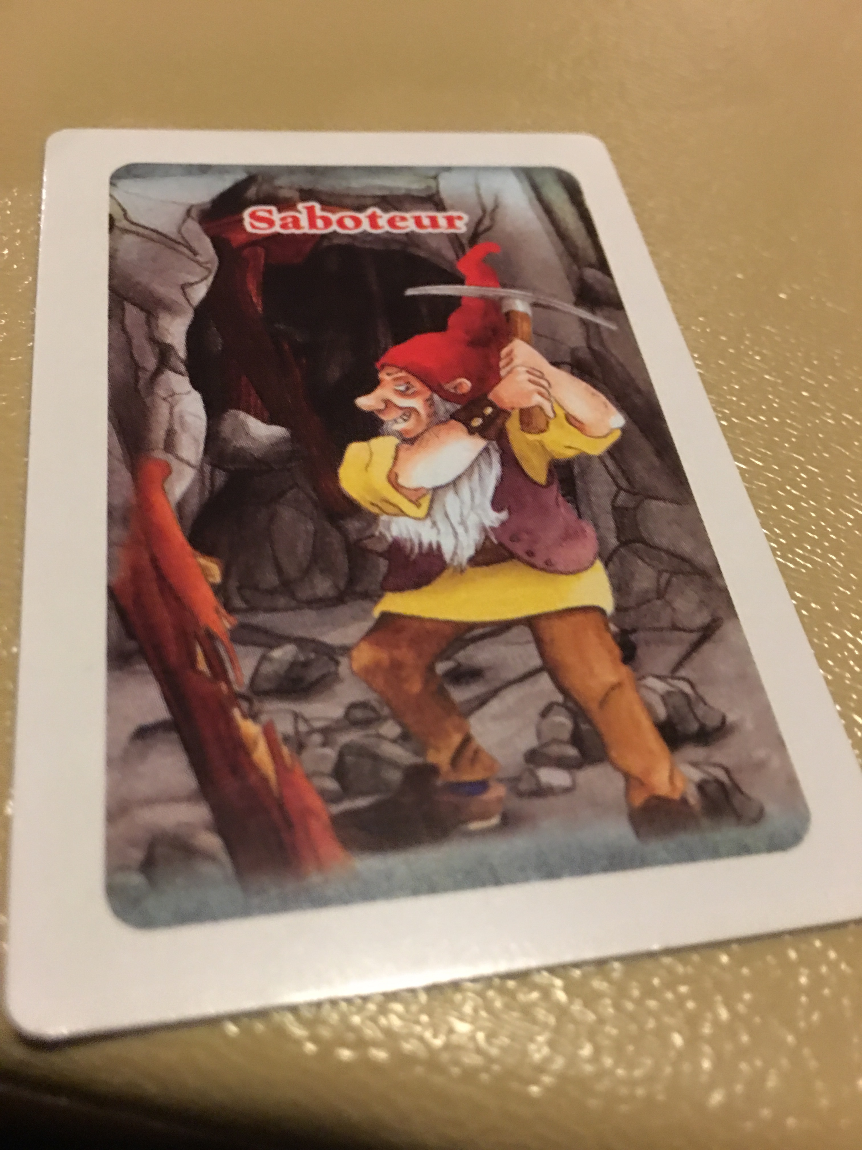 The other critique I would offer is that there seemed to be an imbalance of equipment cards. This offered the awkward situation of knowing who the saboteurs were yet being unable to do anything to prevent them. There were a few rounds that we lost to the saboteurs because miners with broken equipment can’t build, and we didn’t have the luck of the draw.
