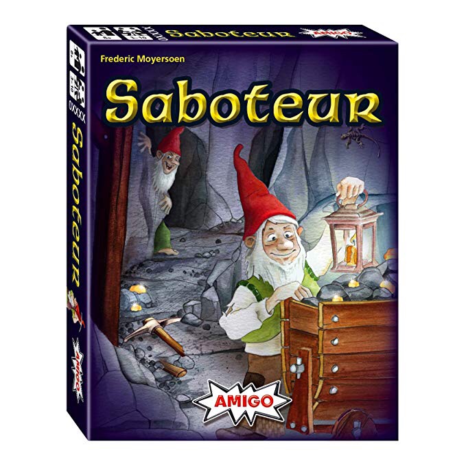 In Saboteur gnome miners are working their way towards one of three spots in search of gold (the other two are coal). The miners quickly discover there are saboteurs in their midst. The saboteurs will be creating dead ends, causing rock slides, and breaking equipment – halting progress on the mine.