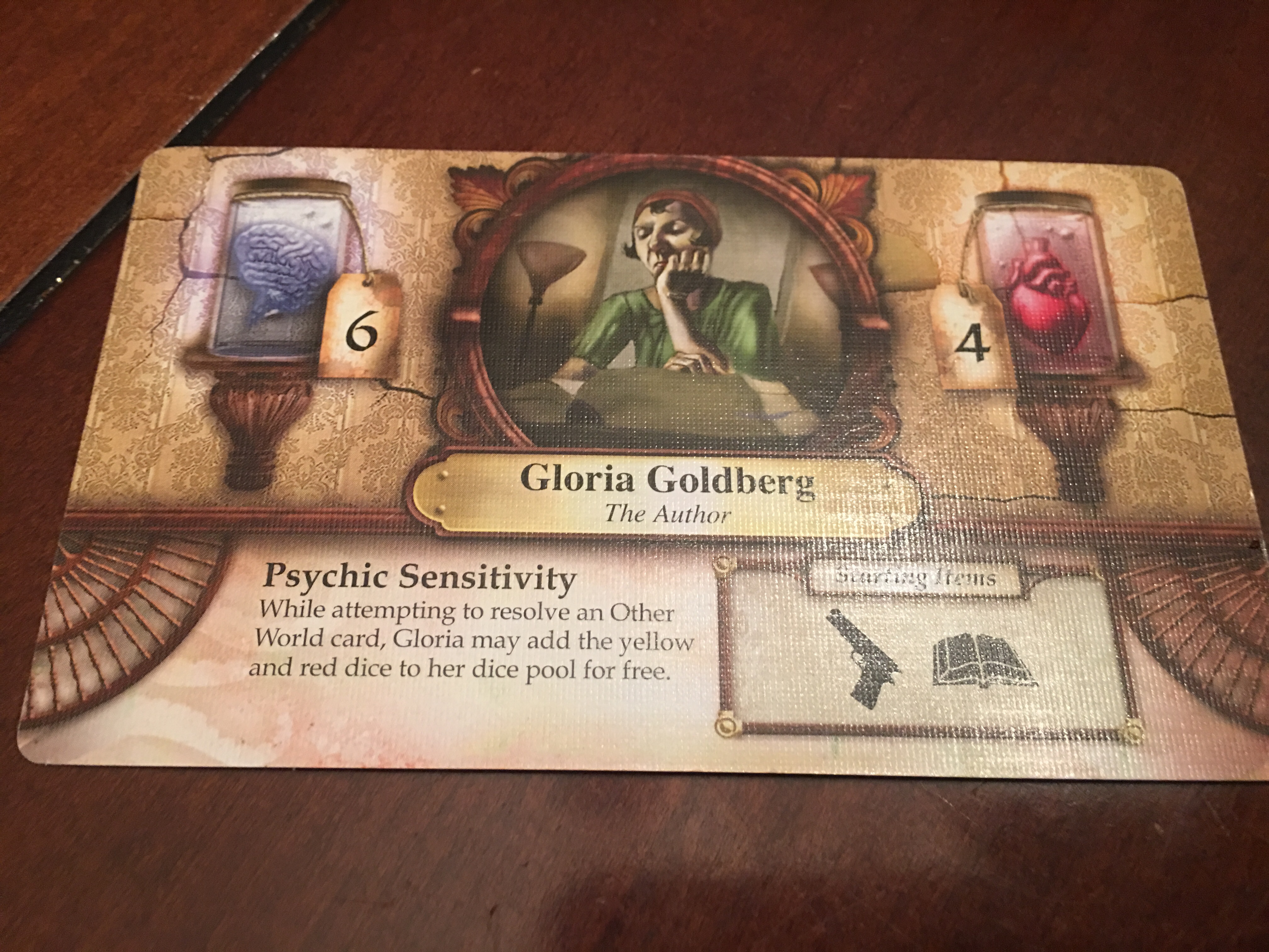 It’s set in Arkham – a fictional town in Massachusetts- and Otherworlds, like Lovecraft’s work, but the characters seem to mostly be original. The “quotes” on the character cards are not direct from what I could recall, and I read Lovecraft’s work kinda looking for those quotes. This Arkham predates Batman’s. There’s a quaint story that Batman’s co-creator was inspired to make Arkham Asylum after a chance meeting with Lovecraft.